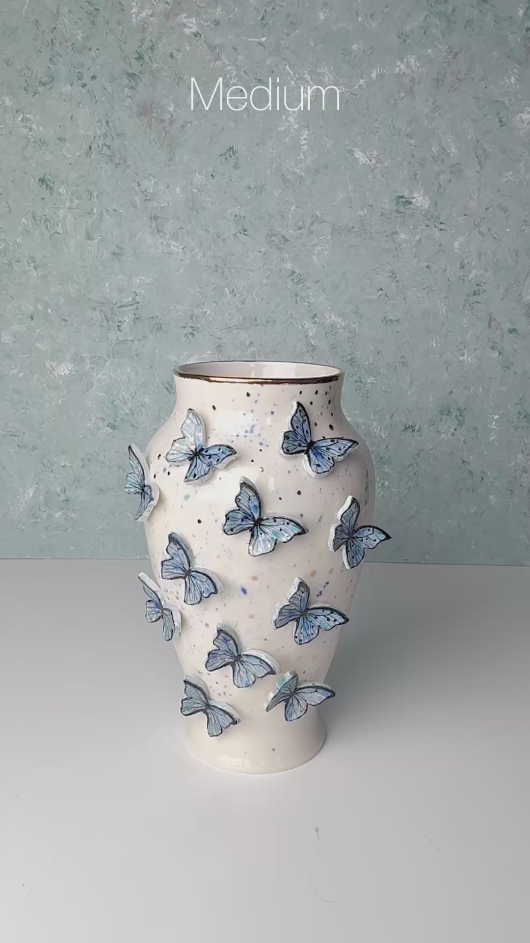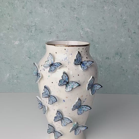 Handmade Porcelain Butterfly Vase – Hand-Sculpted & Painted Ceramic, 22K Gold Accents, Symbolic Art Pottery