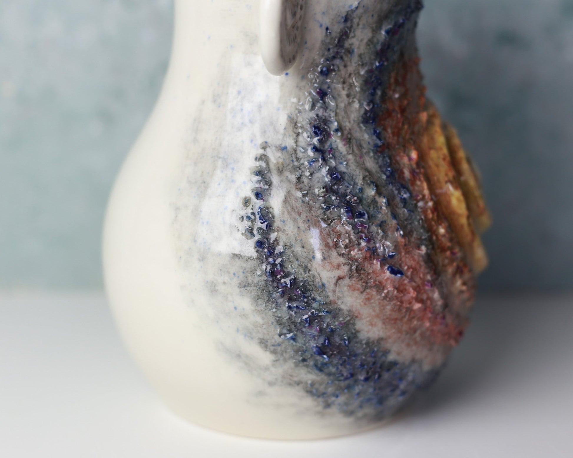 Wheel-thrown and hand-built, hand-painted in layered colors