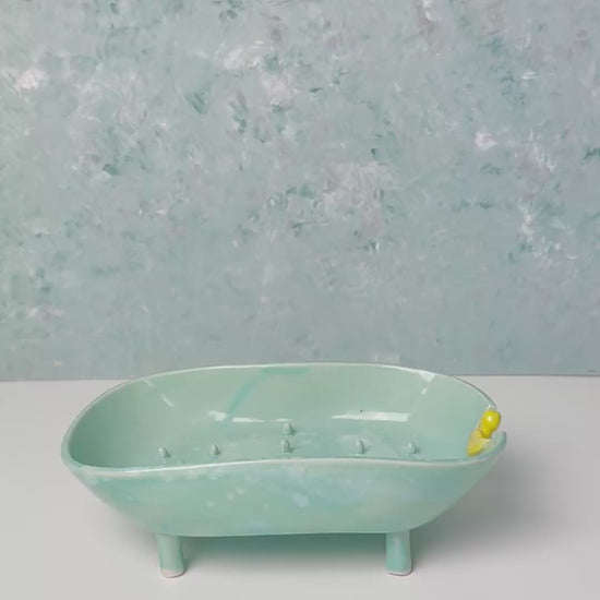 Handmade porcelain soap dish shaped like a bathtub