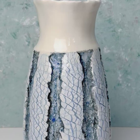 Handmade Porcelain Glacier Vase – Hand Carved & Painted Ceramic, Inspired by Nature’s Ice Formations